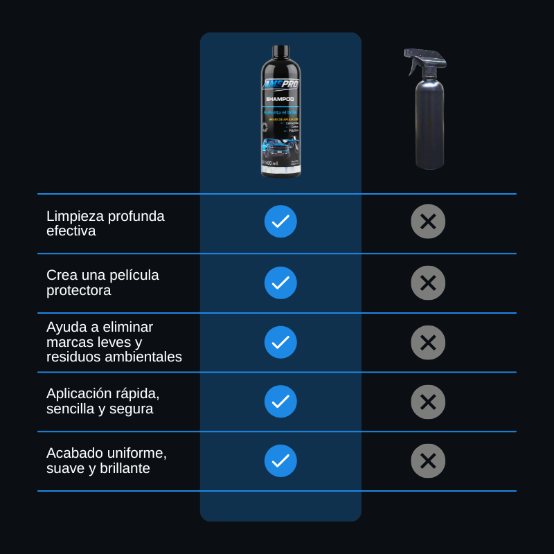 Gracias a su tecnología avanzada, ayuda a eliminar suciedad superficial, marcas leves y residuos ambientales, mientras crea una película protectora que contribuye a mantener la pintura en óptimas condiciones por más tiempo.